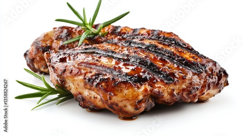 grilled chicken, chicken breast, bar-b-q, bar-b-q, rosemary, grilling, food, meat, dinner, lunch, poultry, delicious, tasty, health food, protein, cookery, cooking, receipe, meal, steak, grill, grilled, roasted, savoury, appetising, culinary, gastronomy, kitchen, eatery, epicure, organic, natural, fresh, healthy, diet, nourishment, white background, closeup, image, summer, picnic, party, celebration, family, friends, weekend