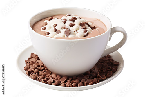 Delicious Hot Cocoa With Whipped Cream and Chocolate Chips on a Cozy Winter Afternoon on Transparent PNG Background.