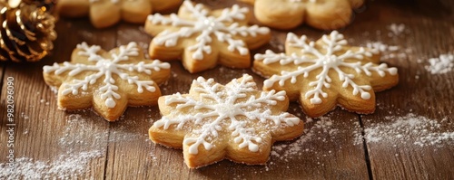 Delicious snowflake-shaped cookies dusted with sugar, perfect for festive celebrations and winter gatherings.
