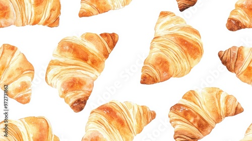 croissant, pastry, baked goods, breakfast, brunch, watercolor, art, illustration, gold, flaky, layer, french, food, dessert, bakery, culinary, delicious, sweet, treat, dough, nourishment, snack, savoury, morning, epicure, rich, texture, design, pattern, traditional, indulge, kitchen, artisanal, wheat, fresh, dining
