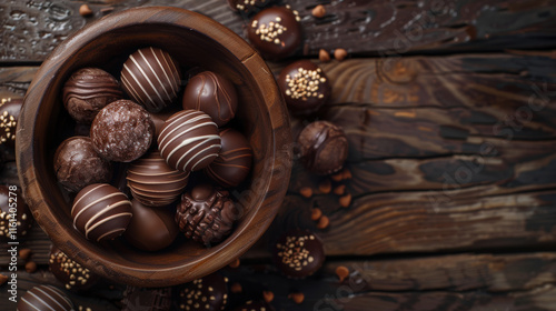 chocolate, sweet, candy, treat, rich, wooden, bowl, luxury, celebrate, national, dark, delightful, day, treat, card, epicure, indulgence, old, dessert, artisan, favor, texture, stylish, vintage, design, crunchy, creamy, mouth-watering, festivity, classic, presentation, earthy, rustic, savoury, elegance, harmony, delicacy, delectable, holiday, appetence, enjoyment, happiness, assortment, inviting, pleasing, craftsmanship, taste, natural