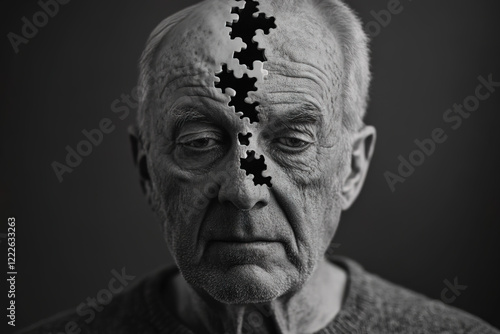 Dementia depicted through a striking visual of an elderly man's fragmented identity and loss of memory