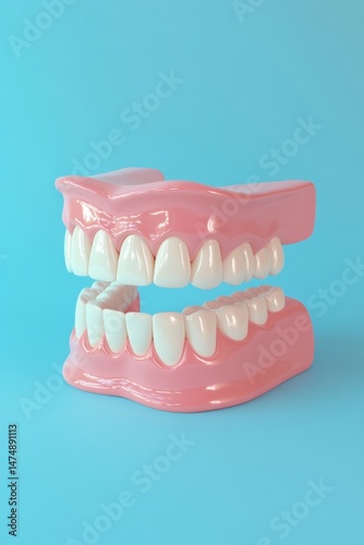 Denture Teeth on Blue Background