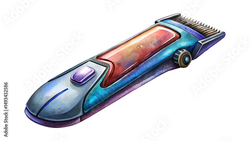 Detailed digital painting of a hair clipper with futuristic design and vibrant colors