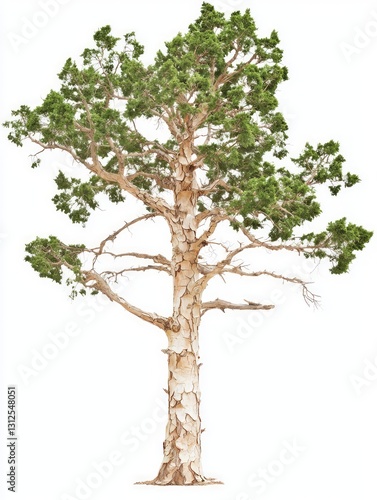 Detailed Illustration of a Tall Paperbark Maple Tree Displaying Foliage