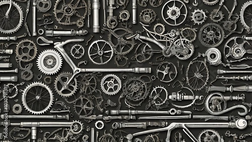 minimal, seamless, handlebar, gear, chain, cycling, minimalist, mechanical, seamless pattern, sport, transportation, bicycle, detailed, elegant, bike, wheel, component, monochrome, mechanic, fitness, adventure, movement, sports equipment, engineering