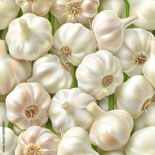 Detailed seamless pattern of realistic fresh garlic close up for versatile use in designs