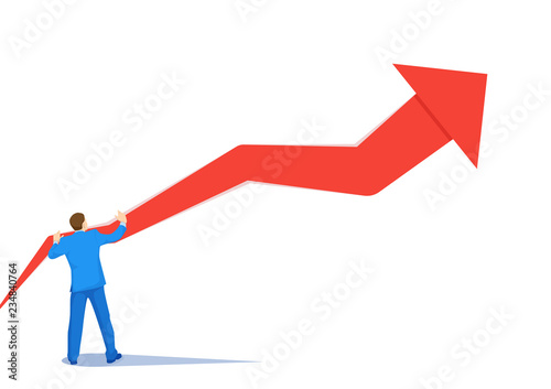 Development businessman upward by upward arrow vector concept. Symbol of growth, success, development, recovery from the crisis and financial victories in the stock market.
