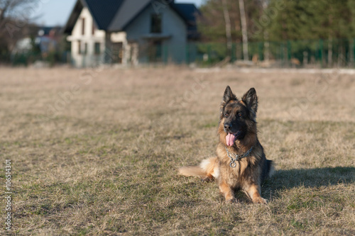 dog, sheepdog, house, field, grass, springtime, tamer, ploy