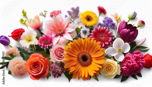 different flowers isolated on white background