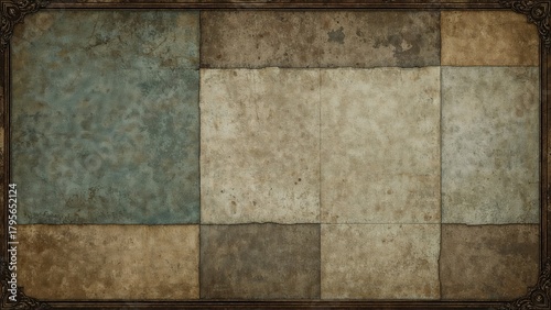 Different textured tiles arranged in a grid pattern with a decorative border.
