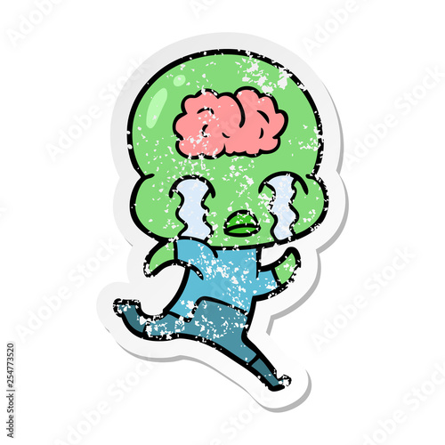 brain, alien, astronaut, crying, creature, upset, sad, lonely, cute, cartoon, sticker, distressed, grunge, realistic, torn, ripped, old, stick, on, icon, decal, label, drawing, illustration, retro, doodle, freehand, free, hand, drawn, quirky, art, artwork, funny, character