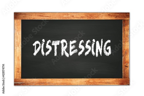 DISTRESSING text written on wooden frame school blackboard.