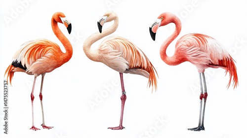 Diverse Flamingos Set on White Background for Elegant Designs