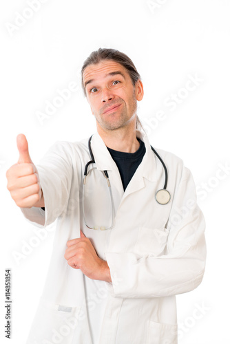 doctor in white coat and thumb up