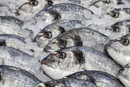 fish, bream, raw, chilled, ice, selective, sharpened, market, food, seafood, sea, fresh, healthy, uncooked, nourishment, dorado, mediterranean, meal, fishing, cold, preparation, tasty, delicious, animal, freshness, natural, dinner, eatery, ingredient, cooking, background, closeup
