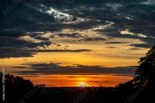 Dramatic sunrise with intense natural orange lights and idyllic dramatic scenery