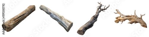 Driftwood dream minimalistic isolated on transparent background, Set of