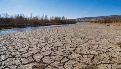 Dry riverbed revealing drought effects and advancing desertification