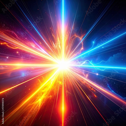 abstract, light, explosion, energy, speed, motion, futuristic, bright, vibrant, burst, ray, beam, glowing, space, star, digital, graphic, design, background, wallpaper, texture, pattern, blue, orange, red, line, perspective, fireworks, technology, datum, communication, network, connection, art, illustration, modern, visual, effect, dynamic