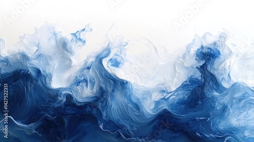 Dynamic flow of blue waves abstract art horizontal pure white background serene concept