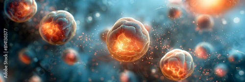 Dynamic stem cells illustration in vibrant colors. Captures the essence of biomedical research and innovation for educational and informational use in science and healthcare