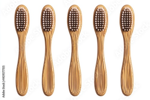 Eco-friendly bamboo toothbrushes lined up against a neutral background