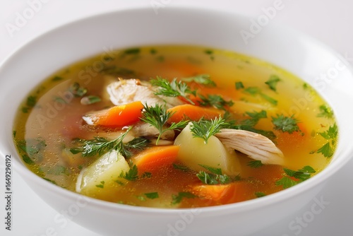 Ecuadorian aguadito chicken soup on white background