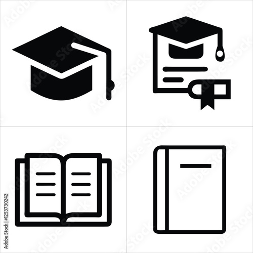 icon, vector, buttons, book, symbol, graduation, illustration, education, three-dimensional, box, cap, paper, document, set, design, signs, home, business, hat, school, house, computer, file, cyberspace, learning