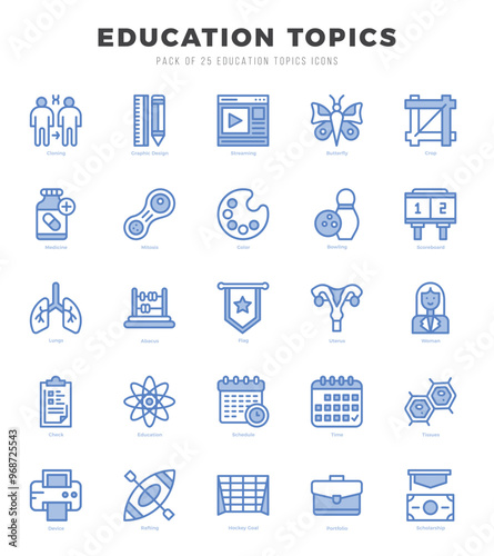 Education Topics Two Color icons collection. Two Color icons pack. Vector illustration