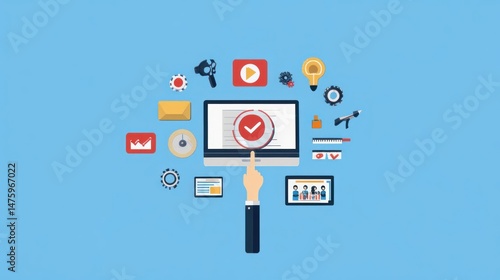 project, management, workflow, completion, task, laptop, computer, screen, technology, digital, online, process, efficiency, productivity, success, checklist, teamwork, collaboration, strategy, planning, organisation, graphic, design, icon, illustration, flat, marketing, business, web, cyberspace, application, software, innovation, idea, concept, solution, modern, system, tool, hand, click