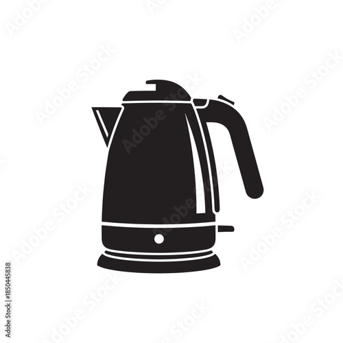 kettle, icon, vector, silhouette, black, white background, isolated, pictogram, symbol, graphic, illustration, minimalist, simple, modern, appliance, home appliances, domestic appliance, boil, heating, hot water, tea, hot drink, drink, beverage, breakfast, kitchen utensile, cooking, preparation, electricity, power, energy, steam, heat, temperature, object, equipment, tool, device, nobody, cut-out, studio shot, kitchen, household