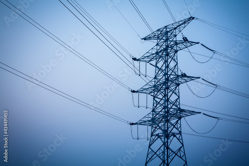 dramatic sky, urban, electrical, blue, industrial, voltage, technology, electricity, electric, industry, line, wire, sky, energy, cable, grid, structure, power, steel, metal, tower, transmission, high, supply, pole, mast, environment, network, distribution, pylon, background, engineering, equipment