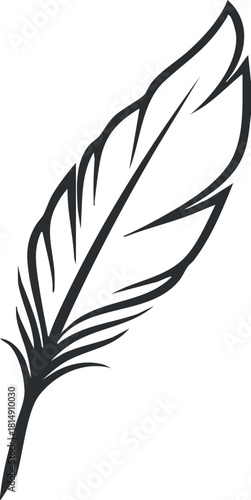 Elegant black and white vector illustration of a stylized feather, perfect for creative and design projects.
