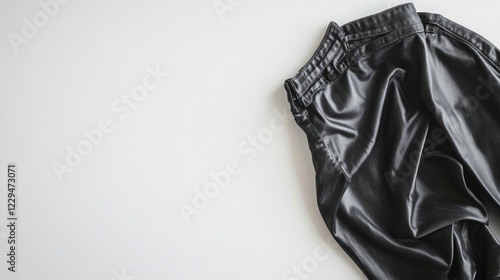 black pants, fashion, clothing, apparel, style, textile, fabric, garment, design, minimalist, monochrome, luxury, sophisticated, elegant, trendy, modern, contemporary, haute couture, texture, shiny, smooth, glossy, drape, fold, crease, detail, white background, studio shot, commercial, retail, e-business, shop, branding, advertising, marketing, image, photo
