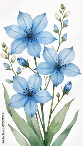 flower, blue, botanical, leaf, elegant, nature, floral, plant, bloom, flower petals, blossom, illustration, watercolor, delicate, white, natural, design, garden, vibrant, artistic, decorative, arrangement, beauty, blooming, fresh, greenery, growth, botany, leaf, stem, spring, summer, bud, pastel, soft, serene, graceful, stylish, freshness, simplicity, calmness, lush, detailed, organic, subtile, foliage, inspiration