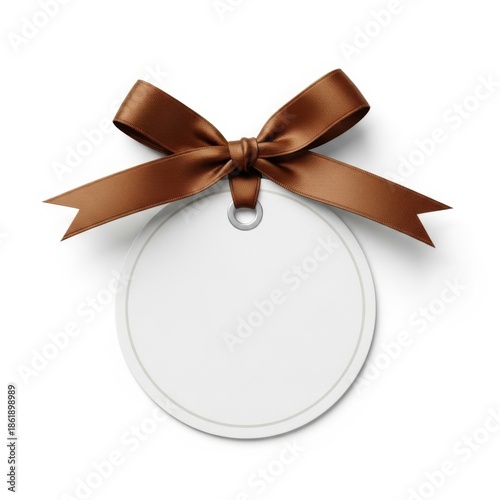 Elegant brown ribbon bow on white tag