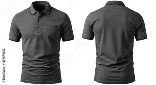 apparel, casual attire, clothing, collar, dark, empty, garment, grey, isolated, menswear, polo, shirt, tee, template, textile, top, uniform, wear, blank, cotton, design, fashion, male