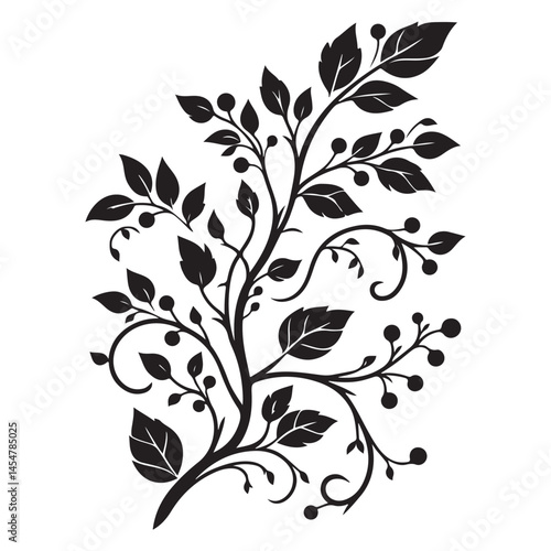 floral, tree branch, leaf, berry, plant, botanical, nature, vector, illustration, design, graphic, clip art, silhouette, isolated, black, elegant, decorative, ornament, pattern, drawing, art, artwork, leaf, berry, stalk, stem, vine, twig, foliage, flourish, swirl, organic, spring, summer, garden, artistic, wallpaper, template, background