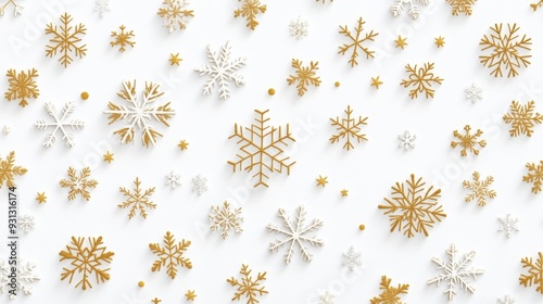 Elegant Geometric Snowflake Pattern with Golden Accents on White Background for Holiday Design