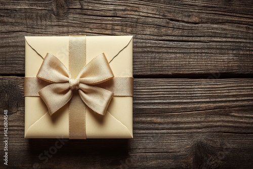 Elegant Gift Box Wrapped with Ribbon on Rustic Wooden Surface