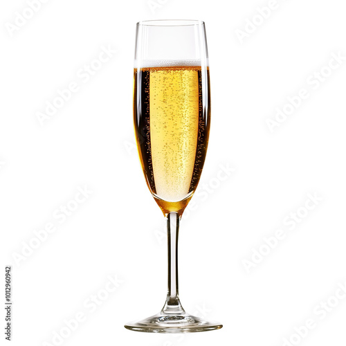 Elegant glass of sparkling champagne, isolated on transparent cutout background