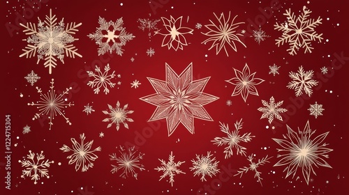 snowflake, festive, christmas, wintery, background, seasonal, decoration, pattern, red, frosty, design, graphic, cold, vector, intricate, sparkling, digital, miracle, texture, illustration, magic, abstract, shimmer, peace, beautiful, delicate, wonder, holiday, artistic, concept, celebration, gold, ornate, style, happiness, visual, calm, art, serenity, joy, elegant