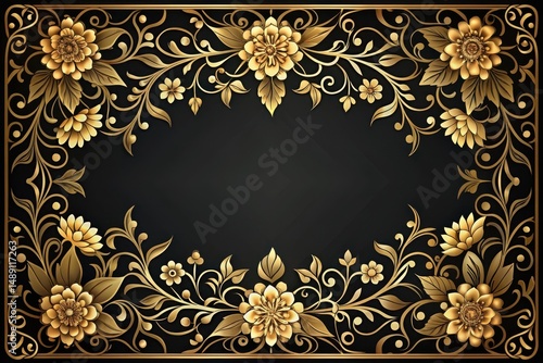 gold, floral, frame, border, ornament, pattern, design, luxury, elegant, dark, background, decoration, invitation, wedding, vintage, classic, ornate, swirl, scroll, bloom, blossom, flower, flourish, decorative
