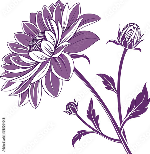Elegant Purple Flower Illustration on White Background Botanical Art Design