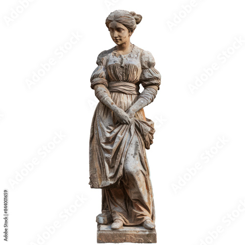 Elegant sculpture of a female figure with historical dress, isolated on a transparent background
