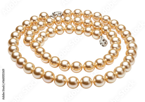 Elegant strand of golden pearls with a diamond clasp, isolated on transparent background