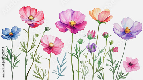 Elegant wedding invitation card background . Minimal hand painted watercolor Cosmos flowers texture template background. Design for wedding, vip cover, poster, rsvp moderncard.Valentine's Day