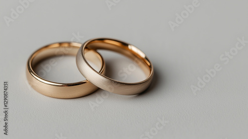 Elegant wedding rings symbolizing love and commitment, captured in a minimalist setting with soft lighting. Generative AI