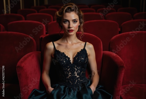 woman, theatre, box, velvet, elegant, gown, opera, fashion, style, luxury, seating, ambience, sophisticated, beauty, performance, evening, attire, chic, glamourous, portrait, hair, make-up, red, dress, formal, event, audience, classic, culture, art, elegance, poise, charme, rich, fabric, dramatic, scene, upscale, refined, presentation, atmosphere, confidence, grace